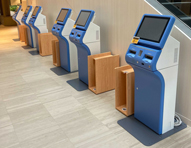 - 各ブロック受付での到着受付は予約時間の15分前から開始します。その時間まで待合スペースでお待ちください。備え付けのモニターで進捗状況をお知らせします。