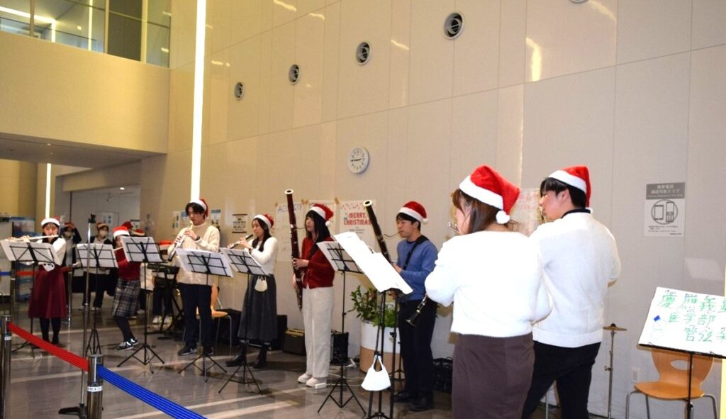 12月13日(土)、今年で27回目となる、慶應義塾大学看護医療学部サンタ企画実行委員会による「サンタ企画」演奏会が、慶應義塾大学病院の外来エリアや病棟ラウンジで行われました。