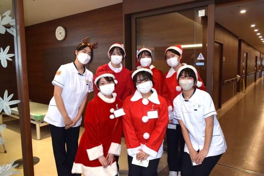 看護医療学部サンタ企画実行委員会のみなさん(病棟ラウンジにて)