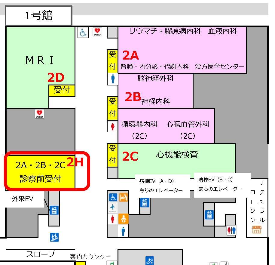 *初診予約・予約外受診ご希望の方は各診療科の受付(2A・2B・2C)へお越しください。