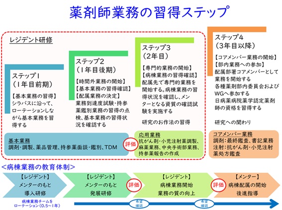 【レジデント制度の研修スケジュールと業務習得ステップのイメージ】